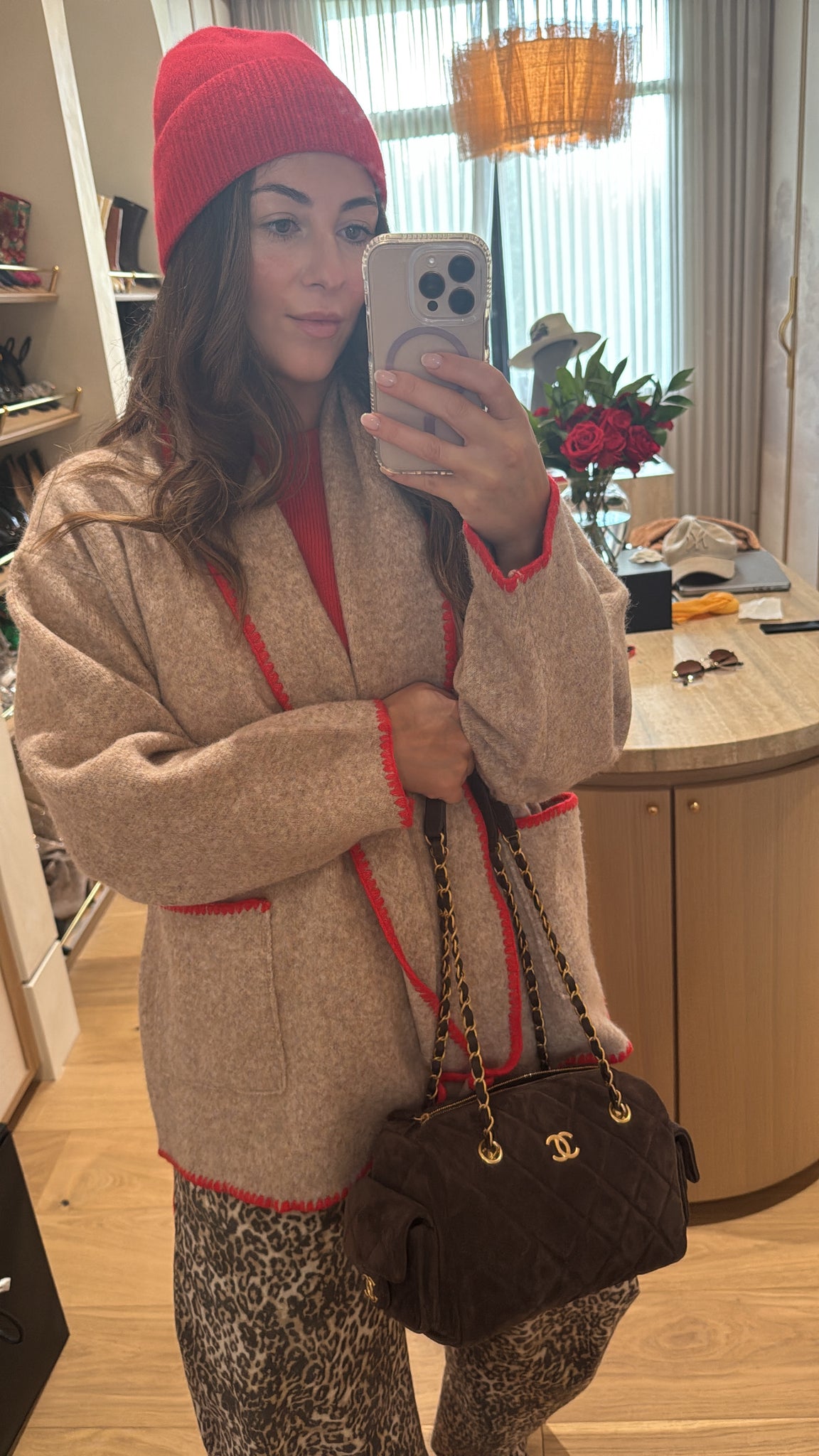 Cecilia Cardigan (Camel/Red)